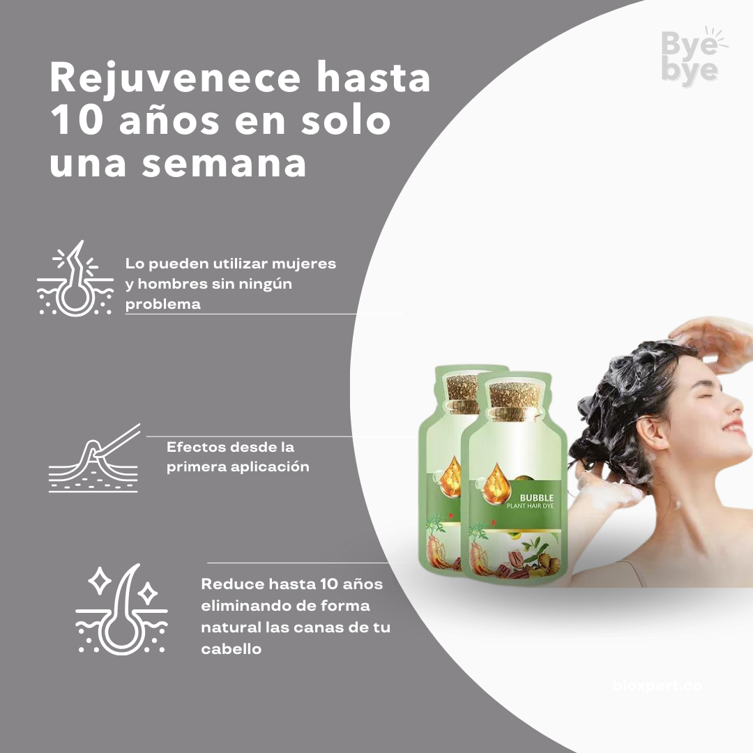 Nuestro Tinte Champu, cubre las cañas de forma rápida y segura mientras cuidas tu cabello con ingredientes naturales. 🌿 Su aplicación es tan fácil como un champú, sin químicos agresivos y con resultados instantáneos.